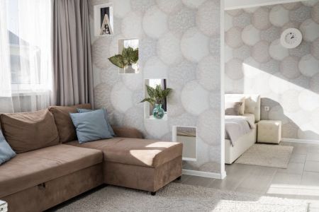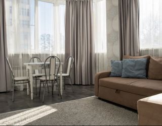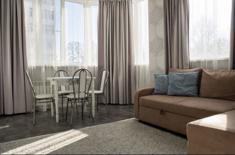 Светлые апартаменты с большими окнами размещены в современном жилом комплексе с прилегающей парковкой. На первом этаже открыты гастроном и столовая.