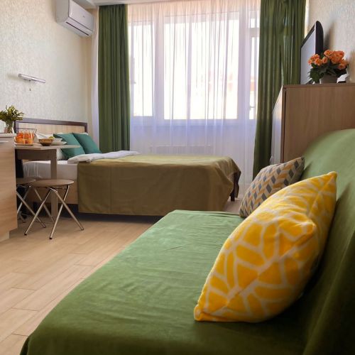 Номерной фонд включает одно- и двухкомнатные апартаменты, полностью укомплектованные мебелью и техникой. Все категории располагают двуспальной кроватью, диваном, кухонной и обеденной зонами. Совмещенные санузлы дополнены стиральной машиной. В каждом номере можно подключиться к Wi-Fi.